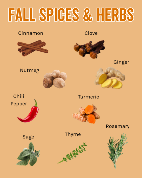 As the air turns crisp and leaves begin to fall, there’s something undeniably comforting about the warm, earthy, and nostalgic aroma of autumn spices. So much so, we deem this time of year as pumpkin spice season! But beyond their cozy flavor, many of the spices we associate with fall like cinnamon, clove, nutmeg, ginger, and chili pepper, offer a surprising array of health benefits. And it doesn’t stop there: herbs like sage, rosemary, thyme, and powerhouse ingredients like curcumin bring anti-inflammatory, immune-boosting, and antioxidant-rich properties that help to support wellness through the colder months (1,2).
